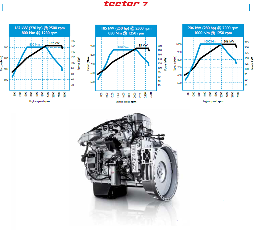 Tector 7 engines are available on power variants from 220 to 280 hp, matched with 6-speed